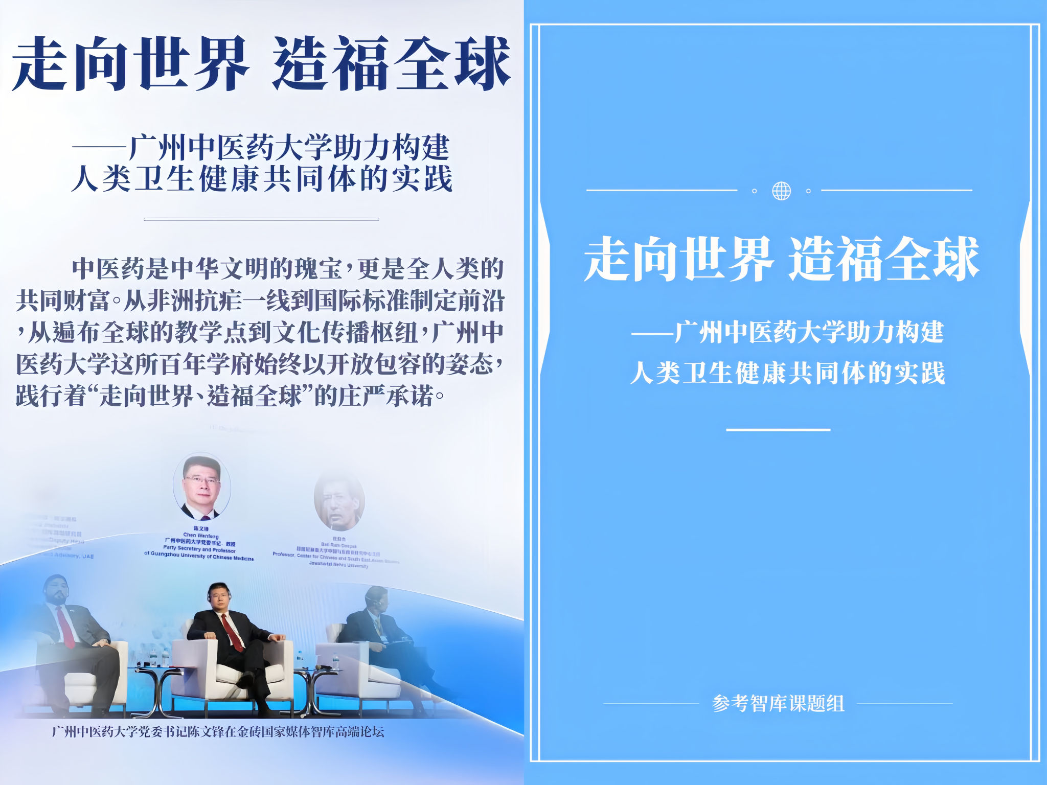 这一年,国际交流合作深化拓展。我们联合新华社开展智库建设,高质量研究报告亮相金砖国家媒体智库高端论坛,让中医药的“中国智慧”在国际舞台发声;学校海外社媒账号@Guangzhou University of Chinese Medicine上线脸书(Facebook)、优兔(YouTube),与全球网友共同分享中医药文化故事;国际交流朋友圈不断扩大,与新加坡、马来西亚等国高校及研究机构共建合作平台,让中医药文化成为连接世界的纽带。
